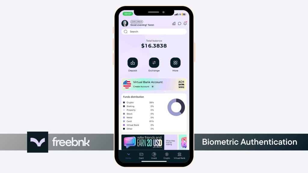 Log in to your Freebnk account quickly and securely using your fingerprint or face recognition.